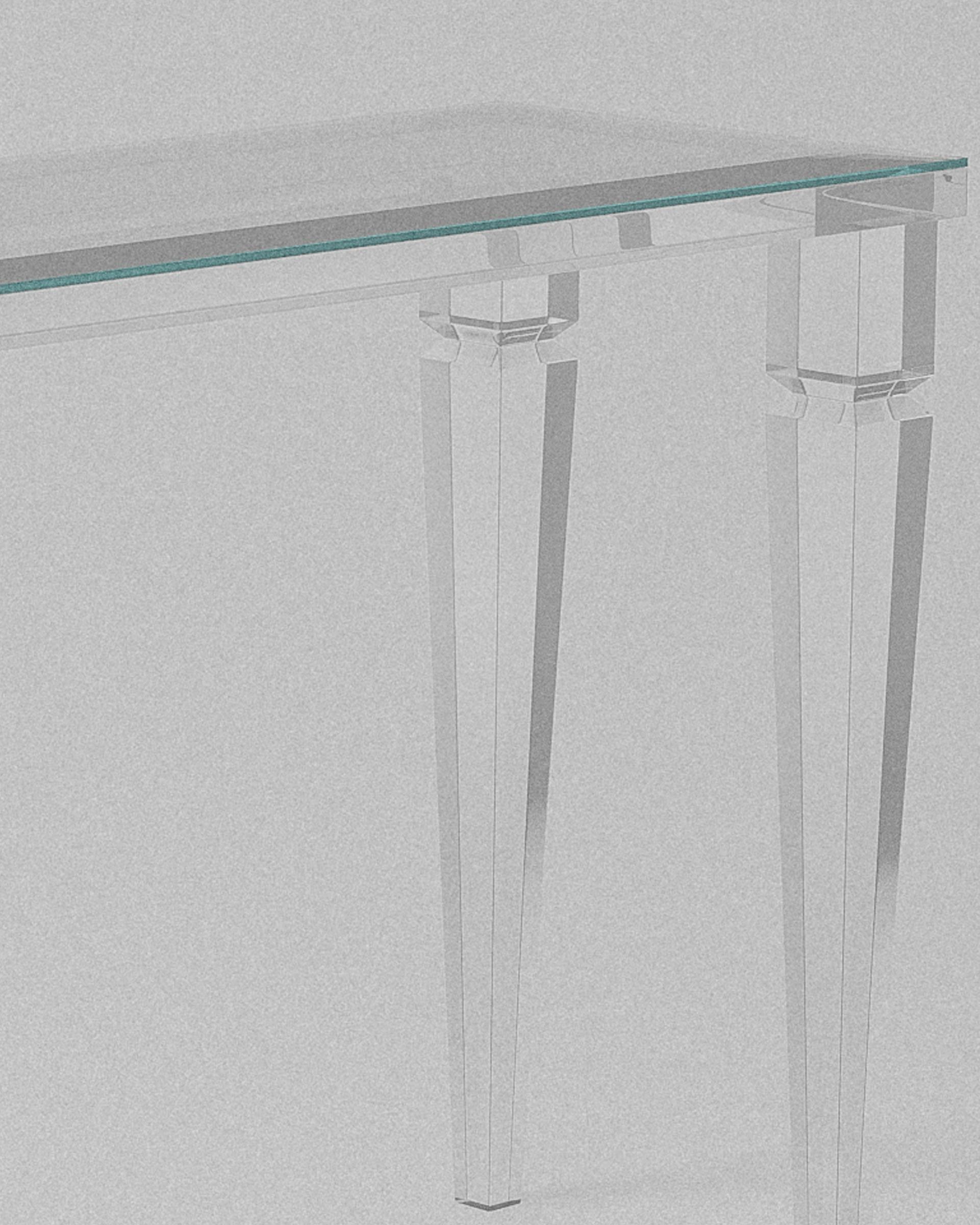 Andora draws on classical forms, refined in lucite. Angled legs catch light in motion, lifting the piece with presence and restraint. Hand finished, American crafted.