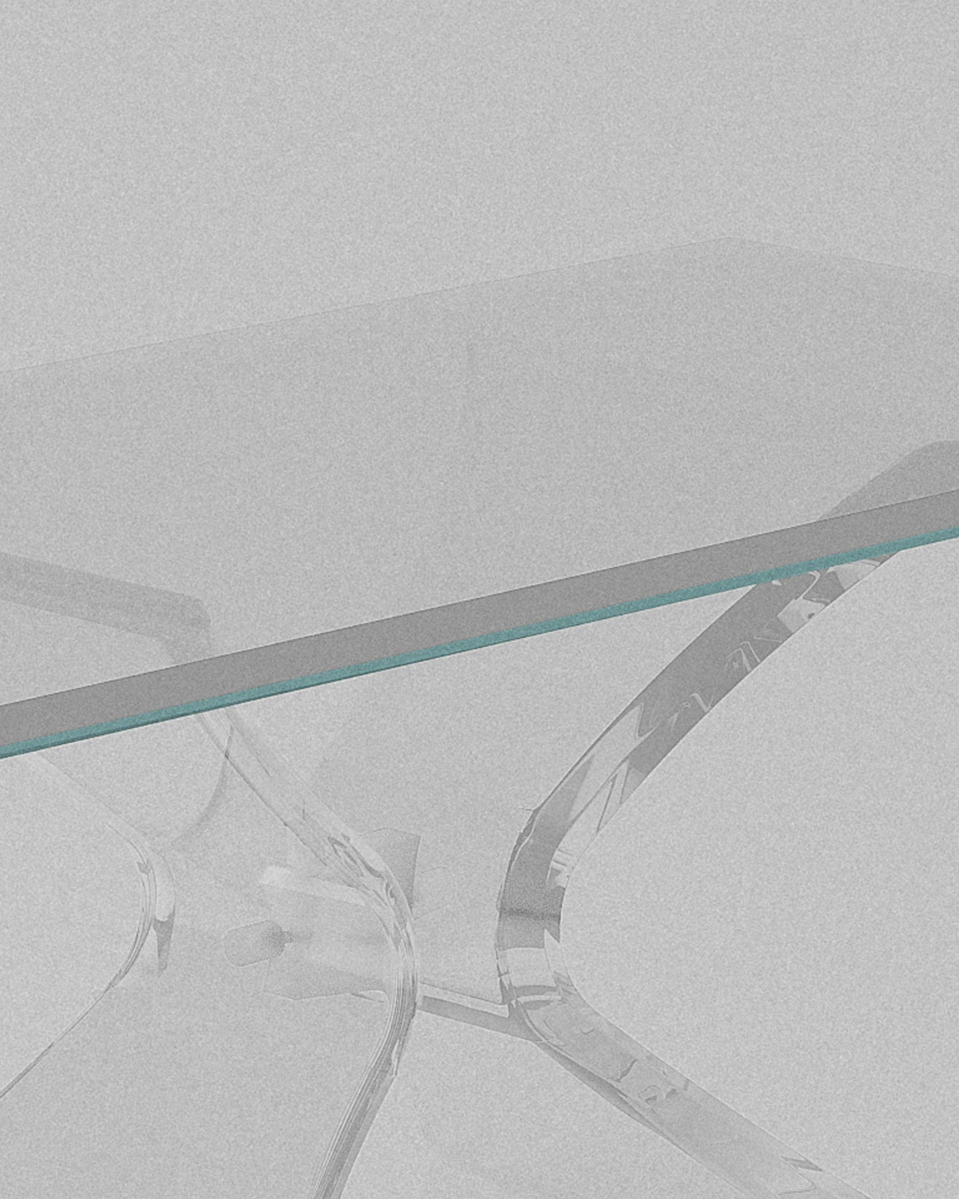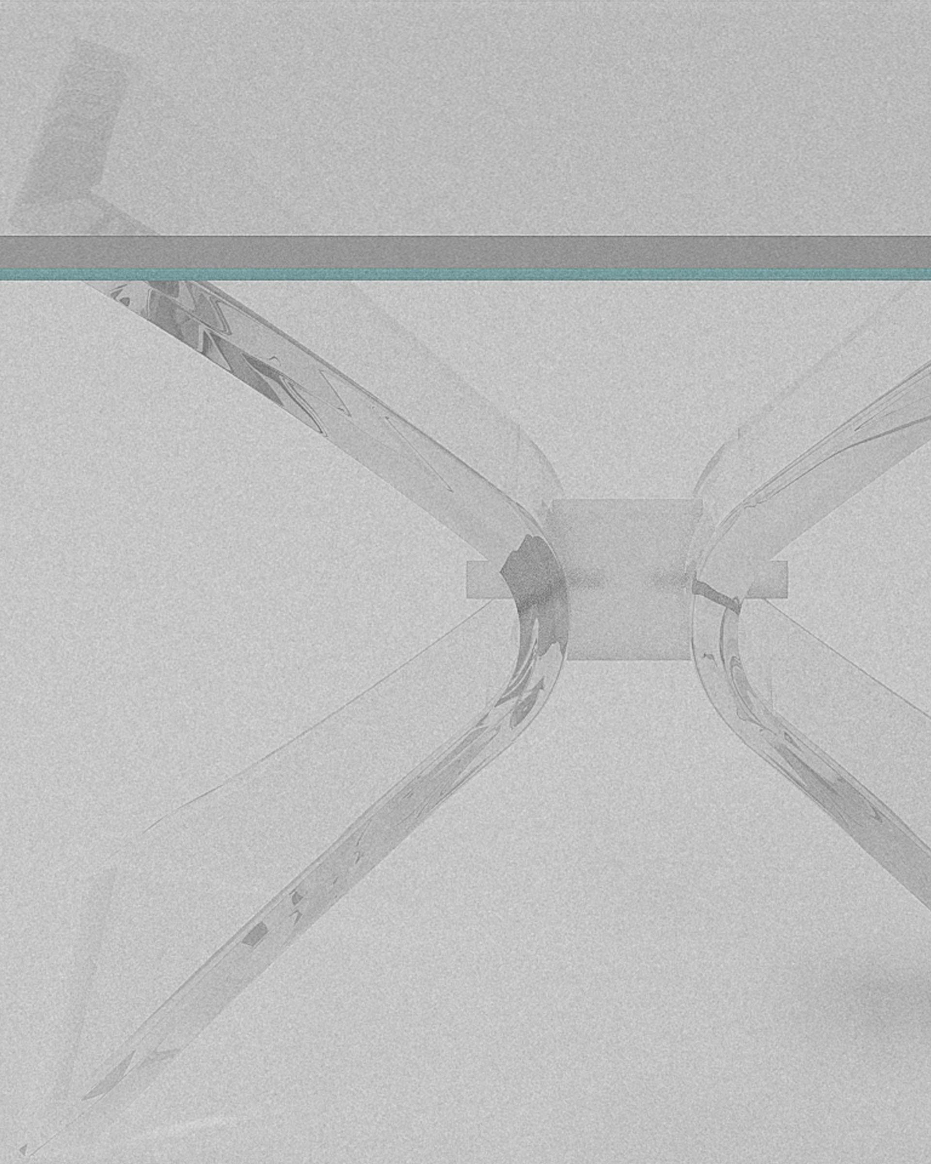 Butterfly rests on bent acrylic legs that arc and cross like unfolding wings. Airy yet grounded, light flows freely through. Hand finished, American crafted.