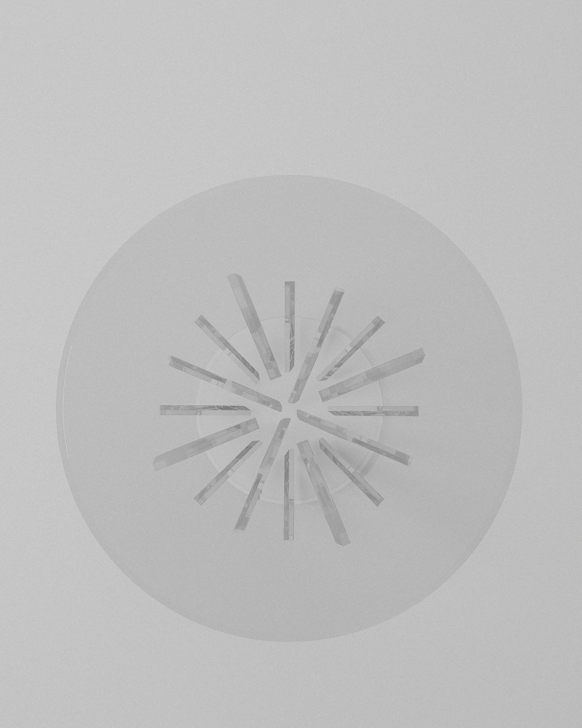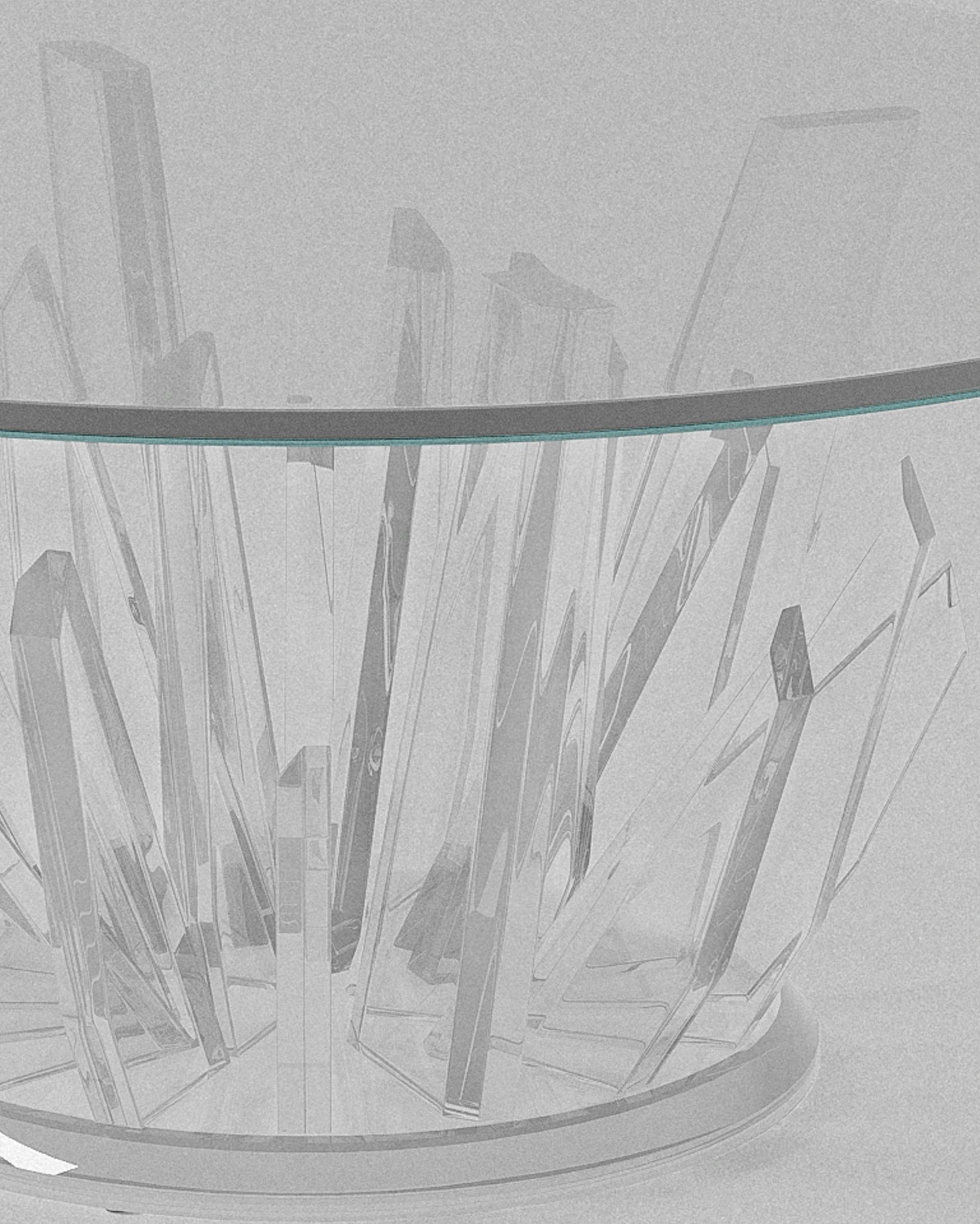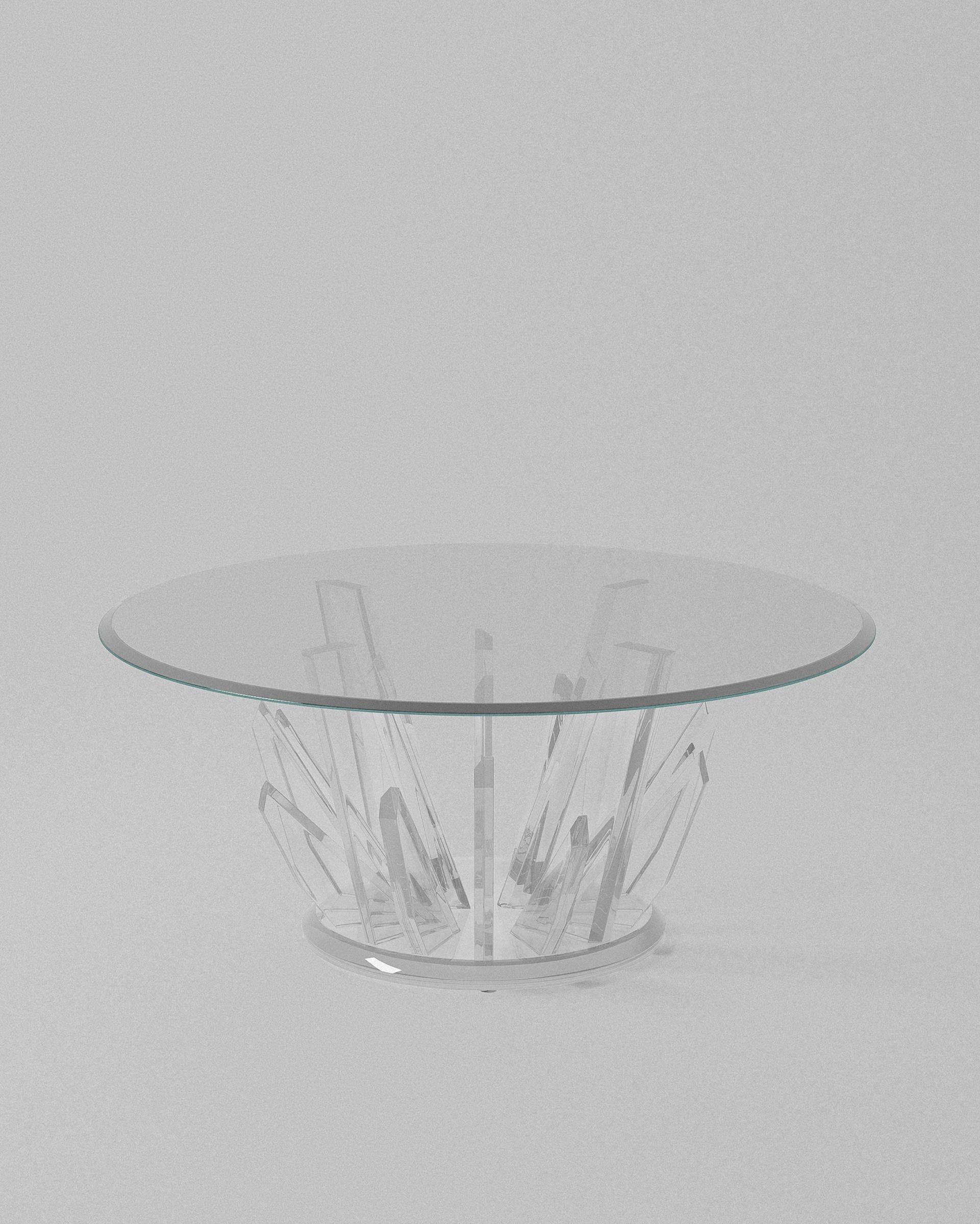 Starburst radiates sculptural energy - crystal-like acrylic shards catch light from every angle. Bold yet airy centerpiece. Hand finished, American crafted.