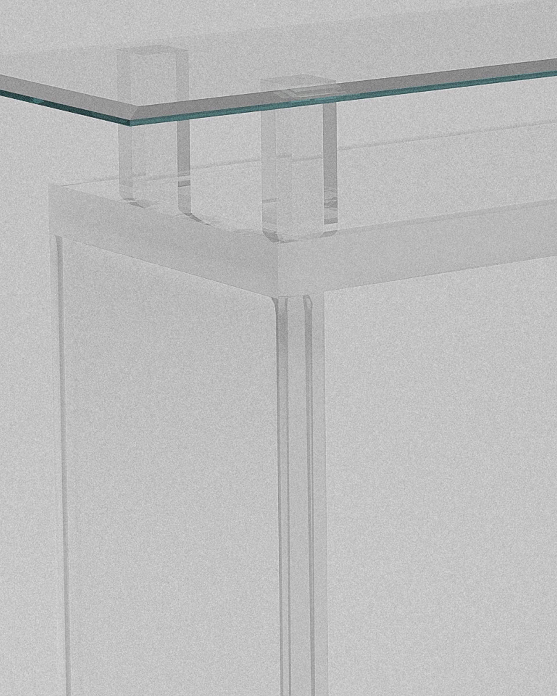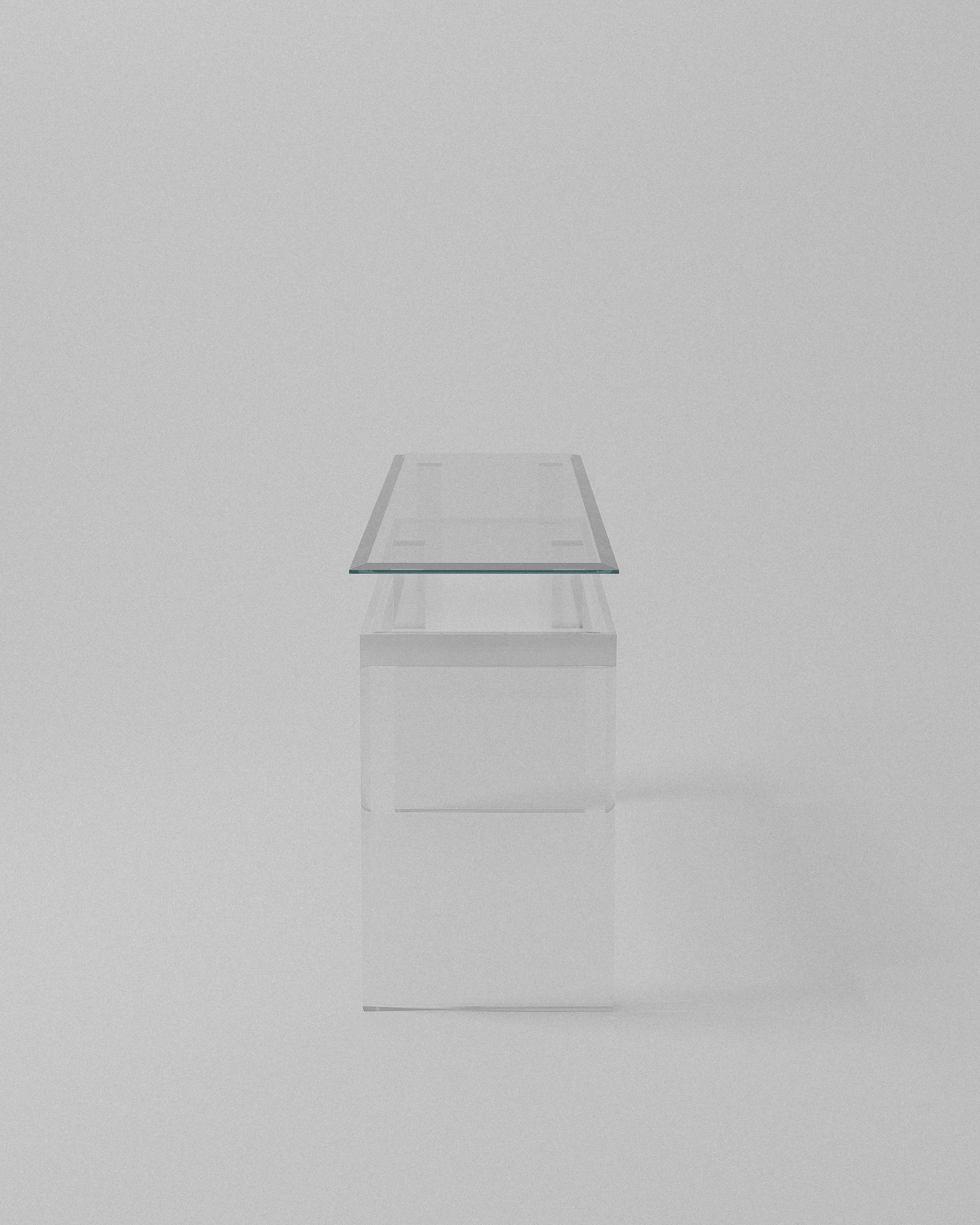 Tokyo balances structural acrylic planes with a floating top, expressing proportion, minimalism, and architectural clarity. Hand finished, American crafted.