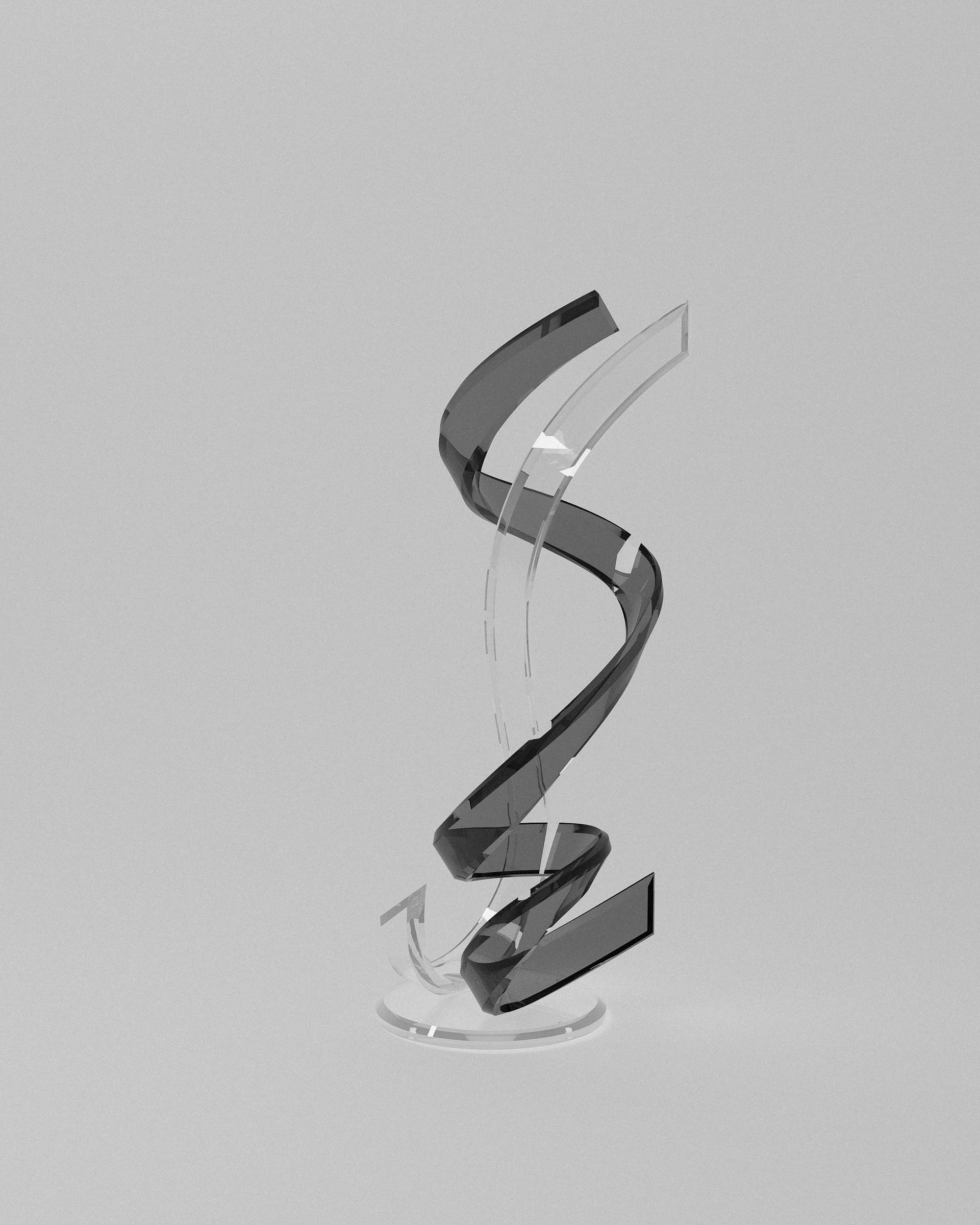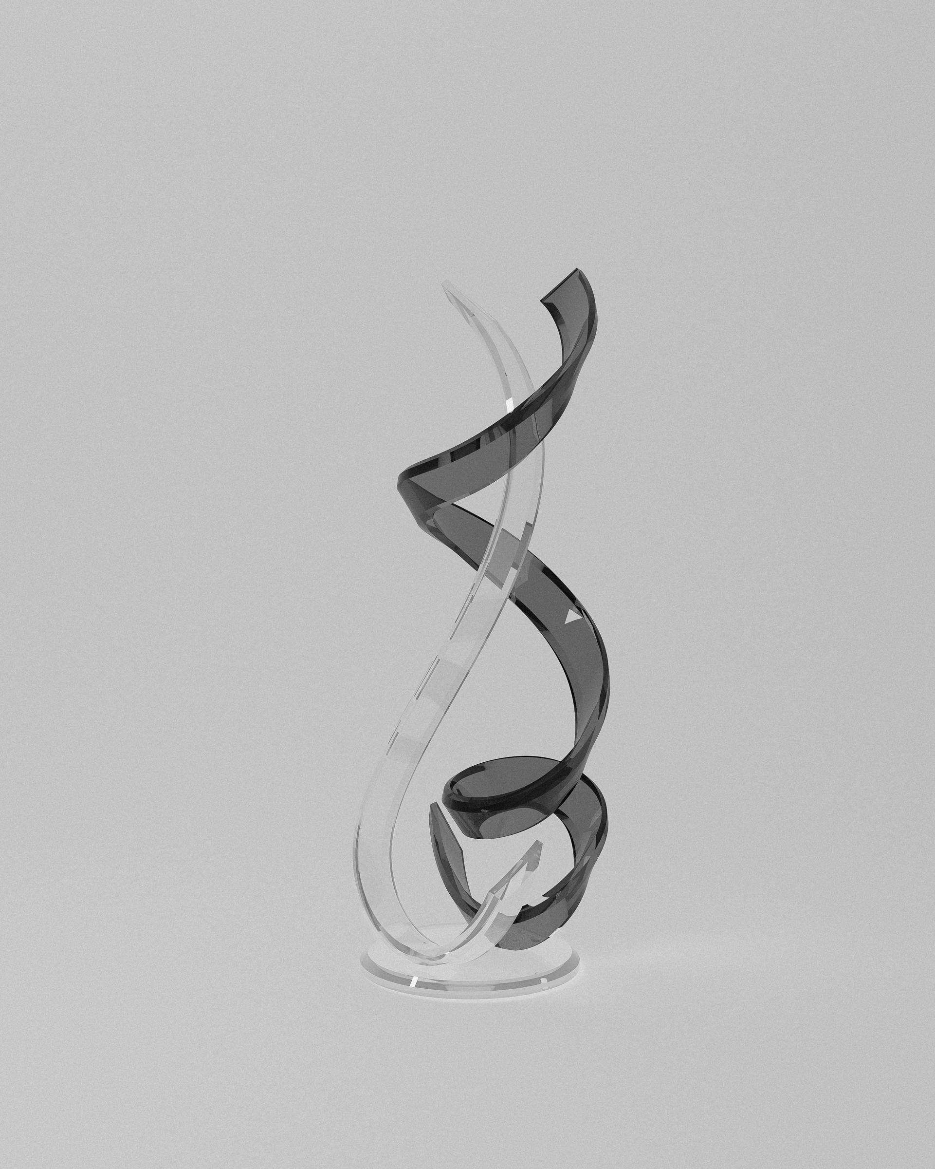 Two acrylic ribbons rise in opposing motion; fluid, sculptural, and full of tension. Twister captures an abstract dialogue between forces. Hand finished, American crafted.