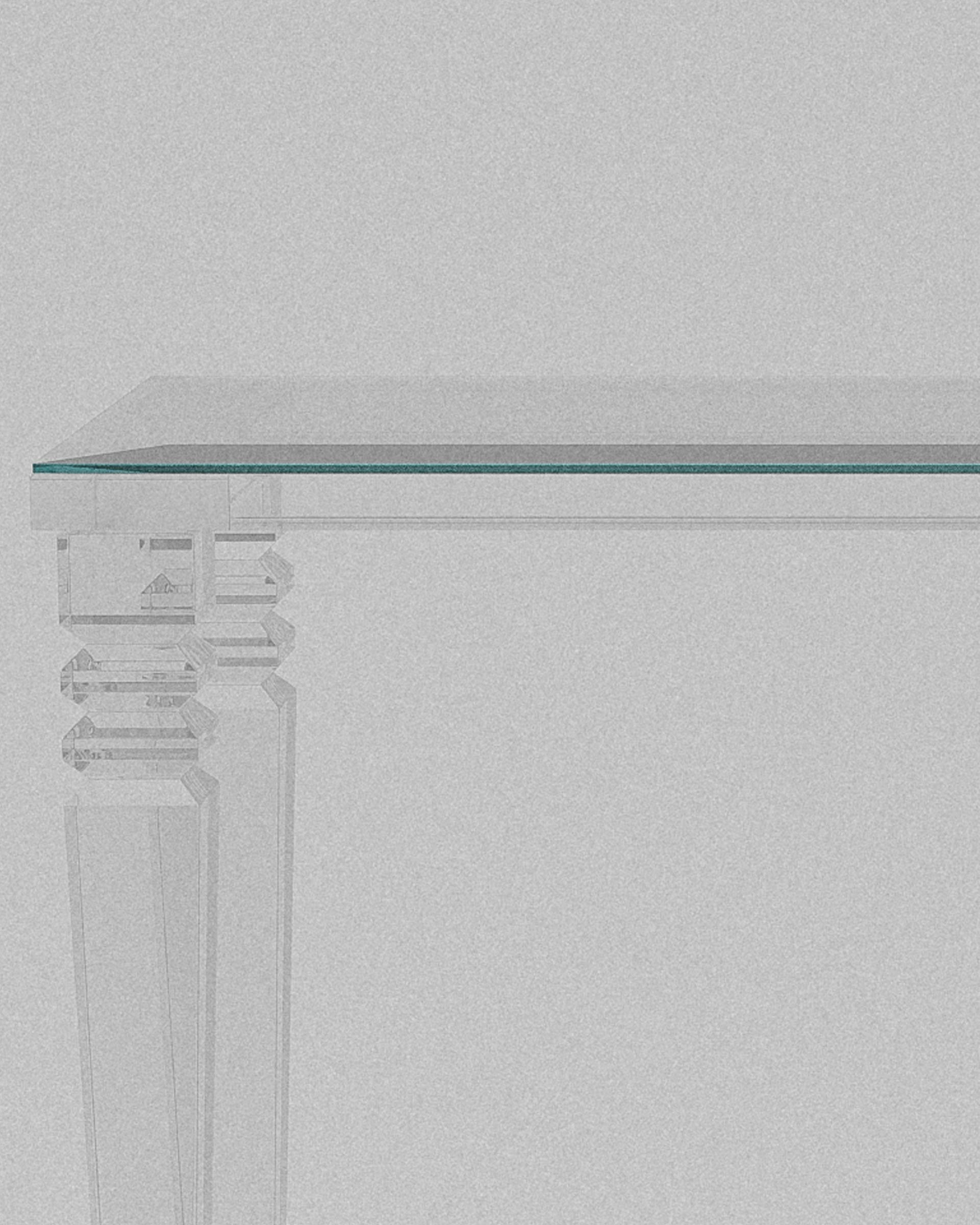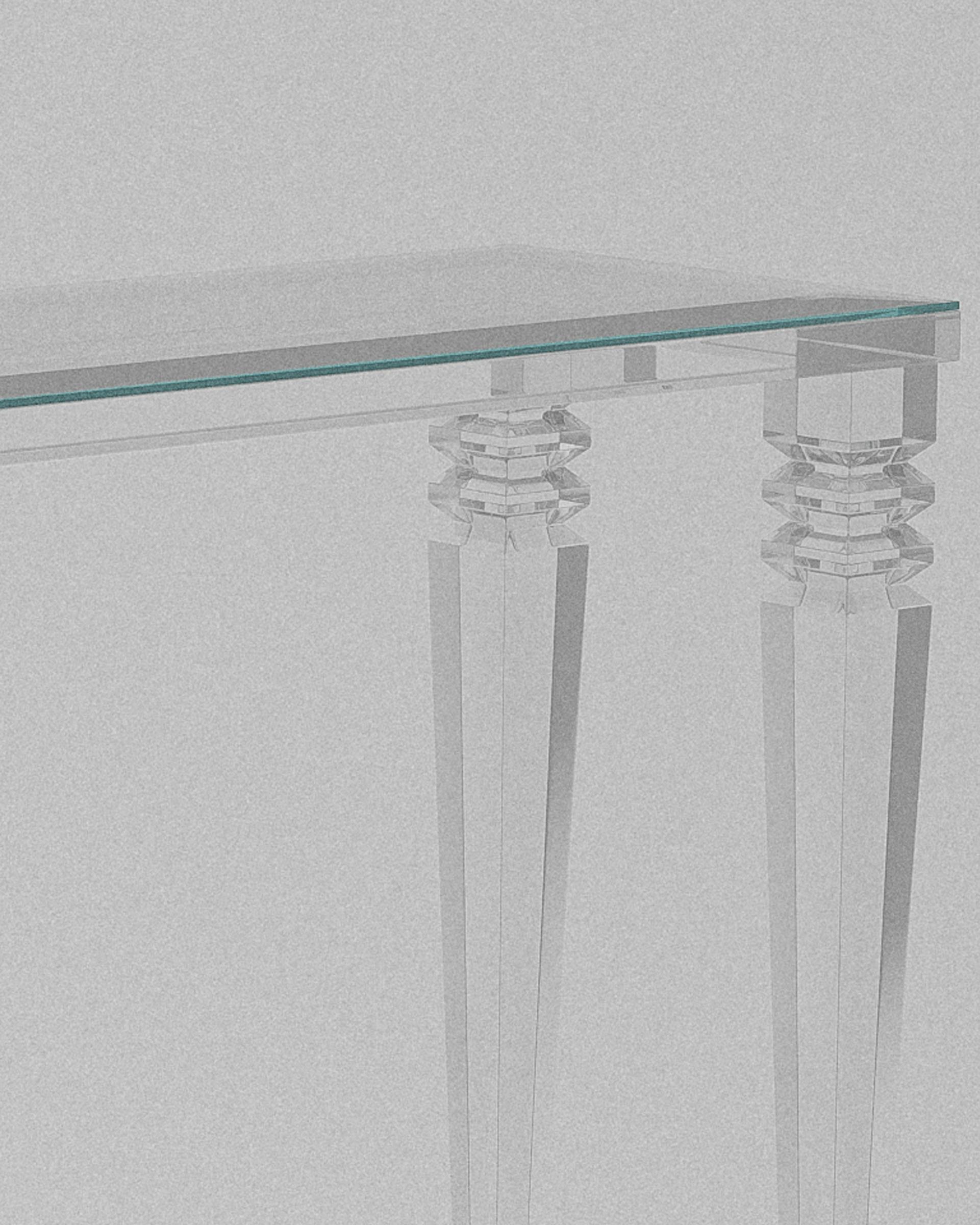 Venice echoes classic carved legs in clear acrylic. Light plays through faceted details, giving tradition a crisp, airy update. Hand finished, American crafted.